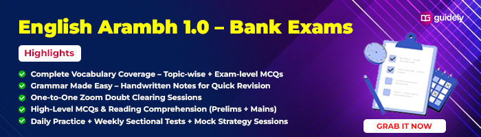 In the major bank exams like SBI PO, IBPS PO, IBPS RRB PO, IBPS Clerk, SBI Clerk, RBI Assistant, the English Language section is there, and it is considered to be highly scoring if you are good with the basics of the language. To prepare for English in bank exams, concentrate on Reading Comprehension, Grammar, and Vocabulary. Read newspapers, practice questions such as error spotting, cloze tests, and para jumbles, and take sectional mock tests to improve speed and accuracy. Learn 5–10 new words every day with proper usage, strengthen grammar fundamentals like tenses and prepositions, work on increasing reading speed, and regularly analyze your practice performance to identify and improve weak areas. Learn how to start English preparation for bank exams with basics, grammar, reading strategy, and a daily study plan by exploring our article.