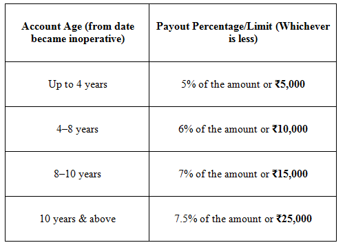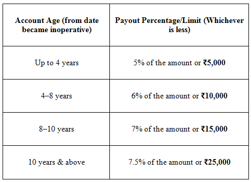 1) Under the RBI’s ‘Scheme for Facilitating Accelerated Payout – Inoperative Accounts and Unclaimed Deposits’, what is the payout percentage for accounts that have been inoperative for 10 years and above?