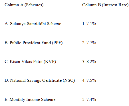 1) Match the following Small Savings Schemes with their corresponding interest rates for October–December 2025: