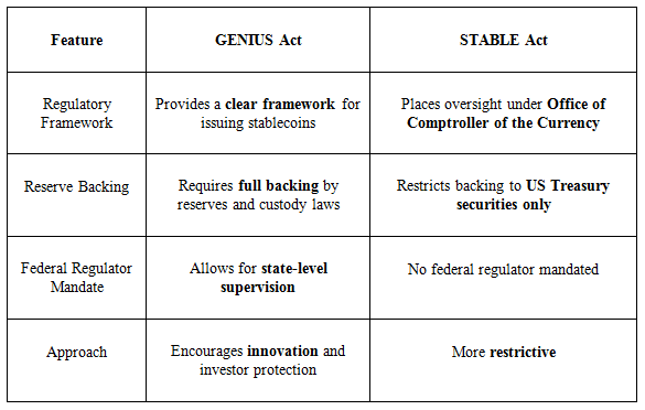14) Which of the following statements is/are true regarding the GENIUS Act as compared to the STABLE Act in the context of stablecoin regulation?