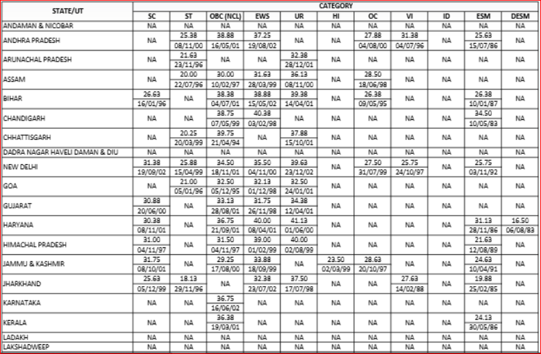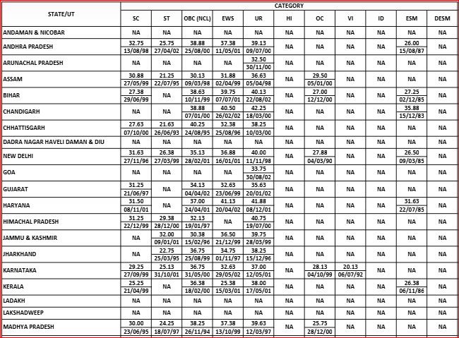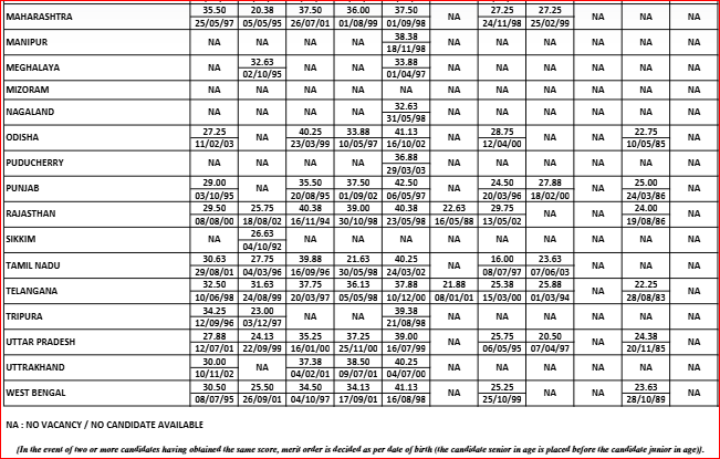 | States/ UT | Expected Cutoff for UR Category |