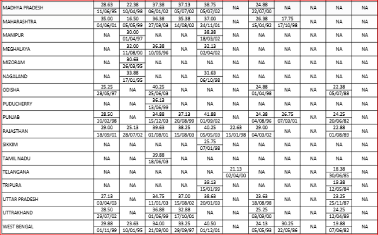 | Rajasthan | 77.50 | 64.50 | 77.5 | 77.50 | |